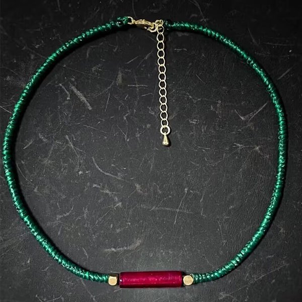 Introducing the stunning Green Red Agate Necklace, a perfect blend of natural beauty and sophisticated design. This exquisite piece not only enhances your outfit but also adds a touch of elegance to any occasion. The rich greens and vibrant reds of the agate stones are masterfully combined to create a captivating accessory that draws the eye and sparks conversations.